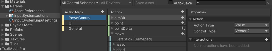 This project uses Unity's newer input system. You can view and edit the input keybinds by editing the actions asset located at Assets\DevDev\content\Params